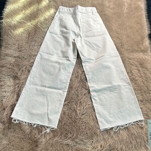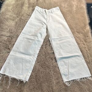 Chic off-white jeans with a wide-leg flare. Perfect for a modern look. Crafted by Zara.