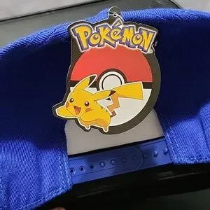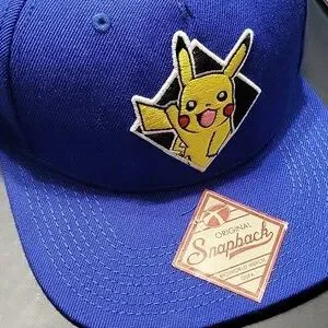 Vibrant blue baseball cap featuring Pikachu design. Perfect for fans.