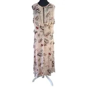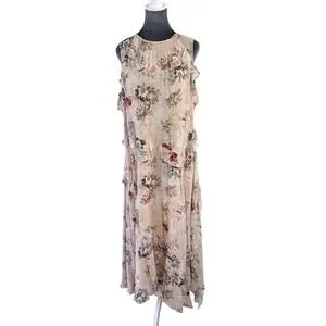 Sundance Floral Maxi XL Boho Fairycore Sleeveless Ruffle Asymmetrical Hem Blush