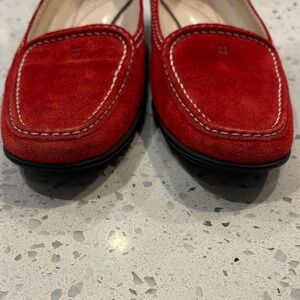 Chic red suede flats by Kate Spade. Comfortable and stylish for any event.