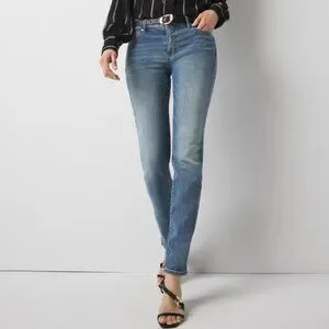 WHBM Women's The Slim Mid Rise Medium Wash Blue Jeans
