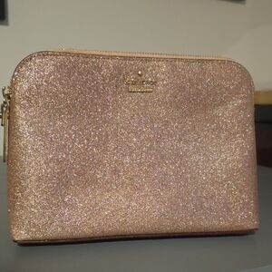 Elegant Kate Spade New York glitter pouch with a shimmering rose gold finish. Ideal for a chic look. It doesnt have stains, no rips, and in excellent pre-owned condition.