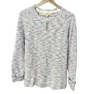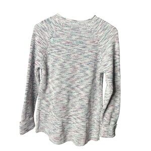 Cozy and chic Style & Co women’s sweater in a soft pastel multicolor knit. Features a classic crewneck, long sleeves, and relaxed fit for all-day comfort. The marled pattern blends shades of pink, lavender, and blue, making it easy to style with jeans, leggings, or skirts. Perfect for layering in cooler weather.