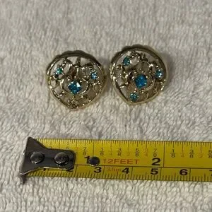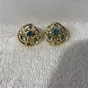 #VintageJewelry #GoldEarrings #ScrewBackEarrings #RetroGlam #MidCenturyStyle #BlueRhinestones