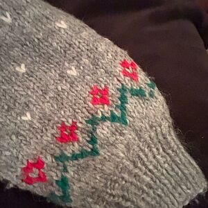Charming Vintage cardigan . Features red and green patterns. Cowichan style #wool #cowichan #grandmacore