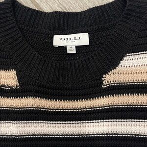 Chic knit top with black and cream stripes. Ideal for casual wear. NWOT. Women’s size medium.