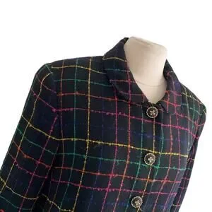 VINTAGE Plaid Cropped Jacket Womens Sz 14 Multicolor Kristinn Steinarr Wool