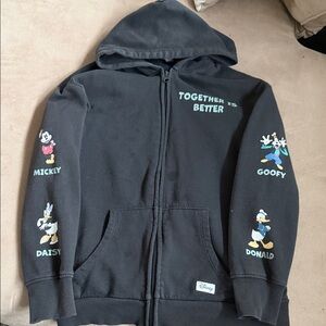 H&M hoodie with Mickey, Goofy, Daisy, and Donald prints. Cozy and playful design. It is in fair condition it was worn by my son often please view photos
