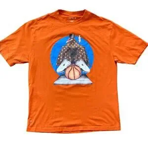 JORDAN T-Shirt Mens Sz Large Orange Artist Series Darien Birks Barber Shop