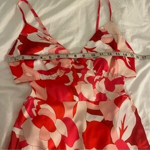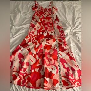 Lulus Pink & Red Floral Satin Midi Dress size Medium