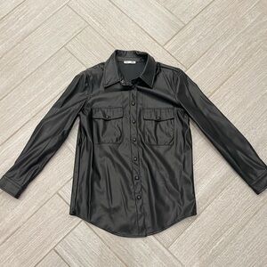 Dex Faux Black Leather Shirt/Shacket