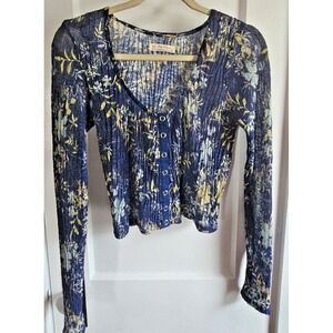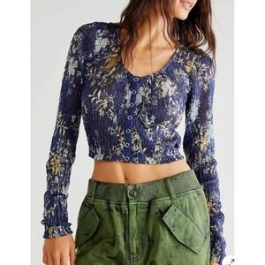 We The Free Angelina wrinkled button down floral Bohemian crop top woman Sz M