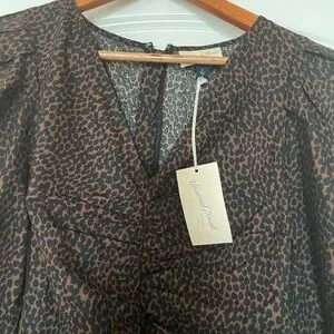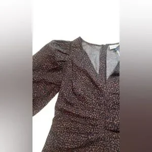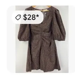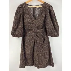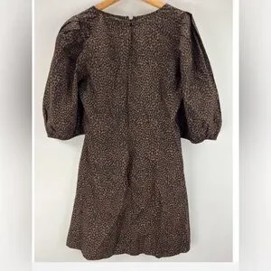 Universal Thread Brown Animal Print Mini Dress Ruched front big puff sleeves NWT
