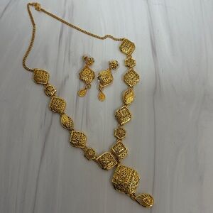 NWT Turkish designer Elegant Gold Necklace and Earring Set