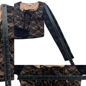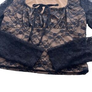 Haley & June Womens M Black Lace Square Neck Tie Bow Long Sleeve Crop Top Grunge