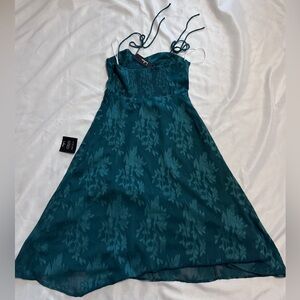 NWT Lulus Loveliest Looks Emerald Green Jacquard Tie-Strap Midi Dress