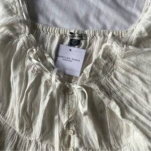 American Eagle Long-Sleeve Babydoll Blouse in White