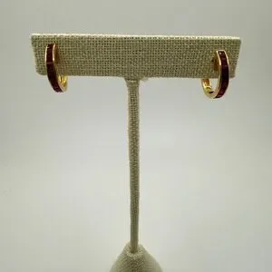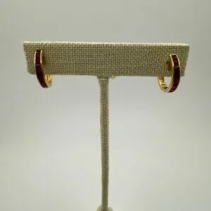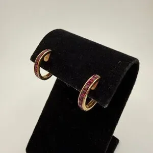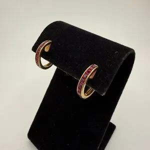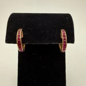 Stunning channelāset, princess cut RUBY huggie hoop earrings,14kt yellow gold