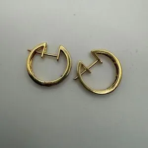 Stamped 585 (14kt) where the hinge of the earring is located. These are in yellow gold.