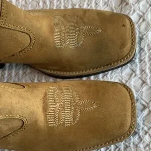 Stylish tan western boots featuring an intricate embroidered design. Perfect for a rugged yet fashionable look.