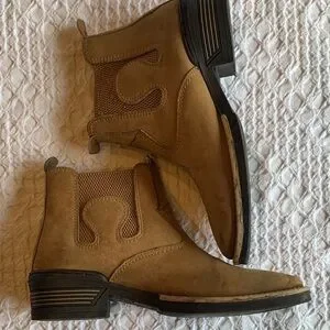Rodeo Chelsea Square Toe Tan Western Boots with Embroidered Design