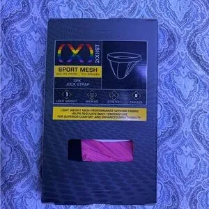Stylish and breathable pride jock straps. Includes blue, white, and pink options. Perfect for active wear.