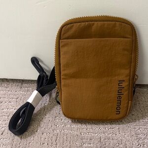 Compact and versatile tan belt bag from lululemon athletica. Ideal for hands-free convenience.