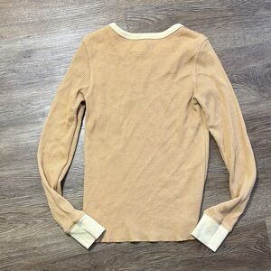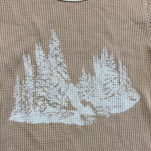 Cozy long sleeve tee with forest graphic. Soft waffle knit texture. Perfect for casual wear.