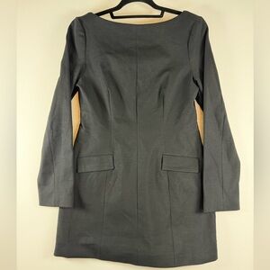Your new favorite LBD, this tuxedo dress is made from a high compact woven fabric and features a stunning low-cut v backline. Complete with an elegant boat neckline, flap pockets in front, and a mini length, this piece is tailored to perfection for the ultimate sartorial statement.