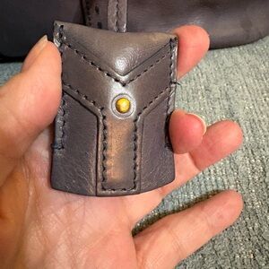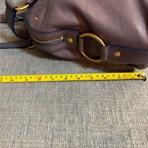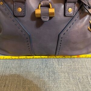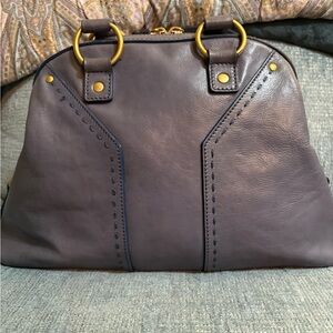 This is a preloved vintage YSL bag please look carefully at all photos, there are some spots from water or possibly bag conditioner, light scratches, overall gorgeous condition. Elegant gray leather handbag with gold accents, perfect for any occasion.