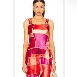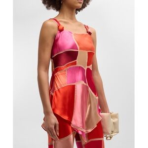 Cult Gaia Shalia Scoop-Neck Burnout Patchwork Top in Pinks Lollipop Multi small