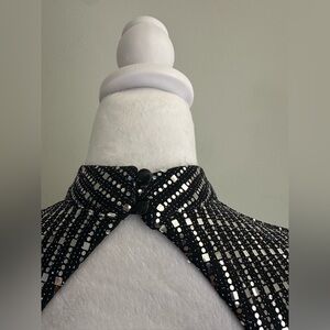Elegant black dress with shimmering silver sequins. Long sleeves for a chic look. Ideal for evening events.