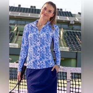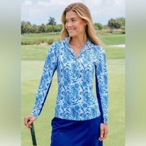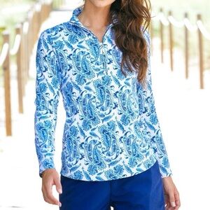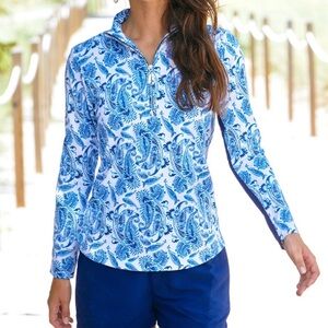 cabana life, upf 50, sun protection, golf top, tennis top, quarter zip, sport polo, athleisure, coastal chic, preppy style, resort wear, performance top, nwt, charleston print, outdoor wear