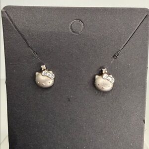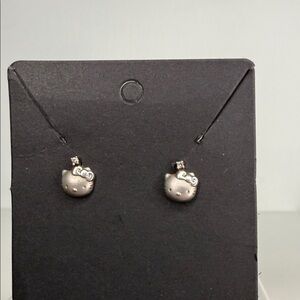 Hello Kitty Sterling Silver Earrings - marked 925/Sanrio pierced w/small crystal