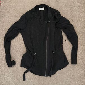 Brand new never worn dark heather gray super soft, lightweight T-shirt material featuring zipper and cinches at the waist. No flaws