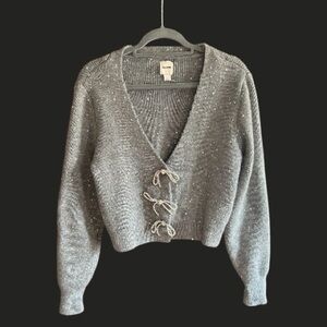 MAEVE ANTHROPOLOGIE Shiny Bow Cardigan Sweater L