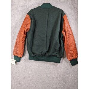 Vintage Holloway College Jacket Large Letterman Varsity Wool Leather Green Brown