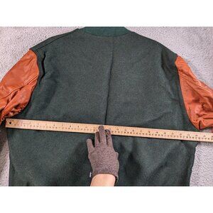 Vintage Holloway College Jacket Mens Large Letterman Wool Leather Green Brown Original College Jacket Heavyweight USA Collegiate High School Football Blank University Snap Front 90s