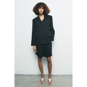 Zara Womens Blazer Jacket Small S Black Double Breast Linen Blend 2490/586 NWOT