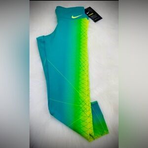 Dynamic teal and lime leggings. Ideal for active lifestyles. Sleek design with a modern touch.