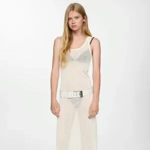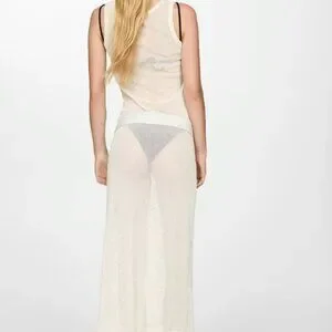 Description: Cotton blend fabric. Long design. Straight design. Openwork design. Round neckline. Sleeveless. Wide straps. No closure.