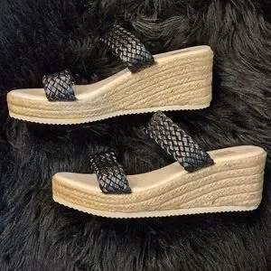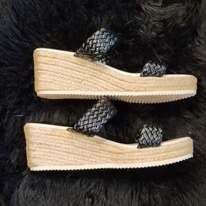 NEW Black Classic Wedge Slipon Sandals Women's Size 6.5 (37)