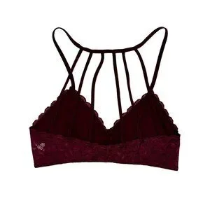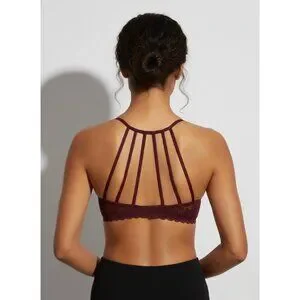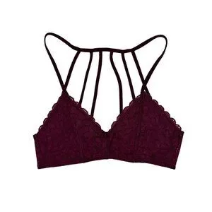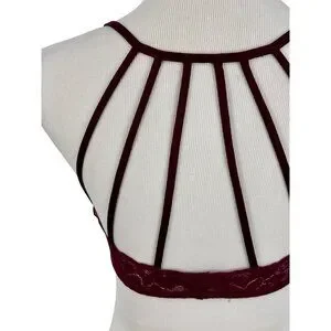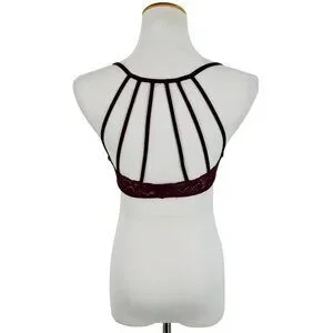 Society Girl Black Cherry Lace Strappy Cage Back Soft Cup Lingerie Bralette Top