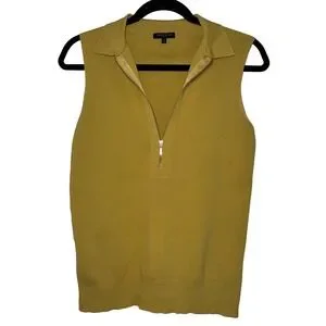 Lafayette 148 New York Chartreuse Sleeveless Quarter Zip Knit Top Small