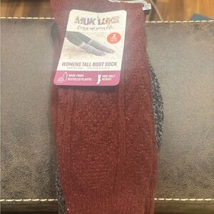 MUK LUKS Women's Tall Boot Socks - Burgundy and Charcoal
