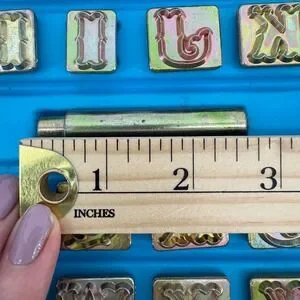 Keywords: alphabet stamps, 3/4 inch letter stamps, gothic leather stamps, vintage craft tools, metal punch set, old english font, leatherworking tools, stamping dies, monogram stamps, DIY leather