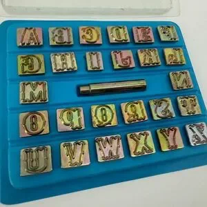 Vintage 3/4" metal alphabet stamp set A–Z.