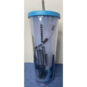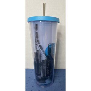 Starbucks 2014 Chicago Illinois Skyline Venti Cold Cup Tumbler Lid & Straw 24 oz