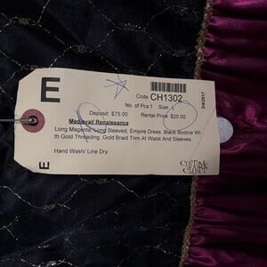 Step into a world of enchantment with this stunning magenta long-sleeve costume dress, perfect for your next Renaissance fair or themed event! This beautiful gown features an elegant empire waist silhouette, designed to flatter and provide a regal appearance.