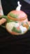 Vintage Henriksen Majalica inspired functional Pottery Pink Green Glazed Floral Rabbit TEAPOT China